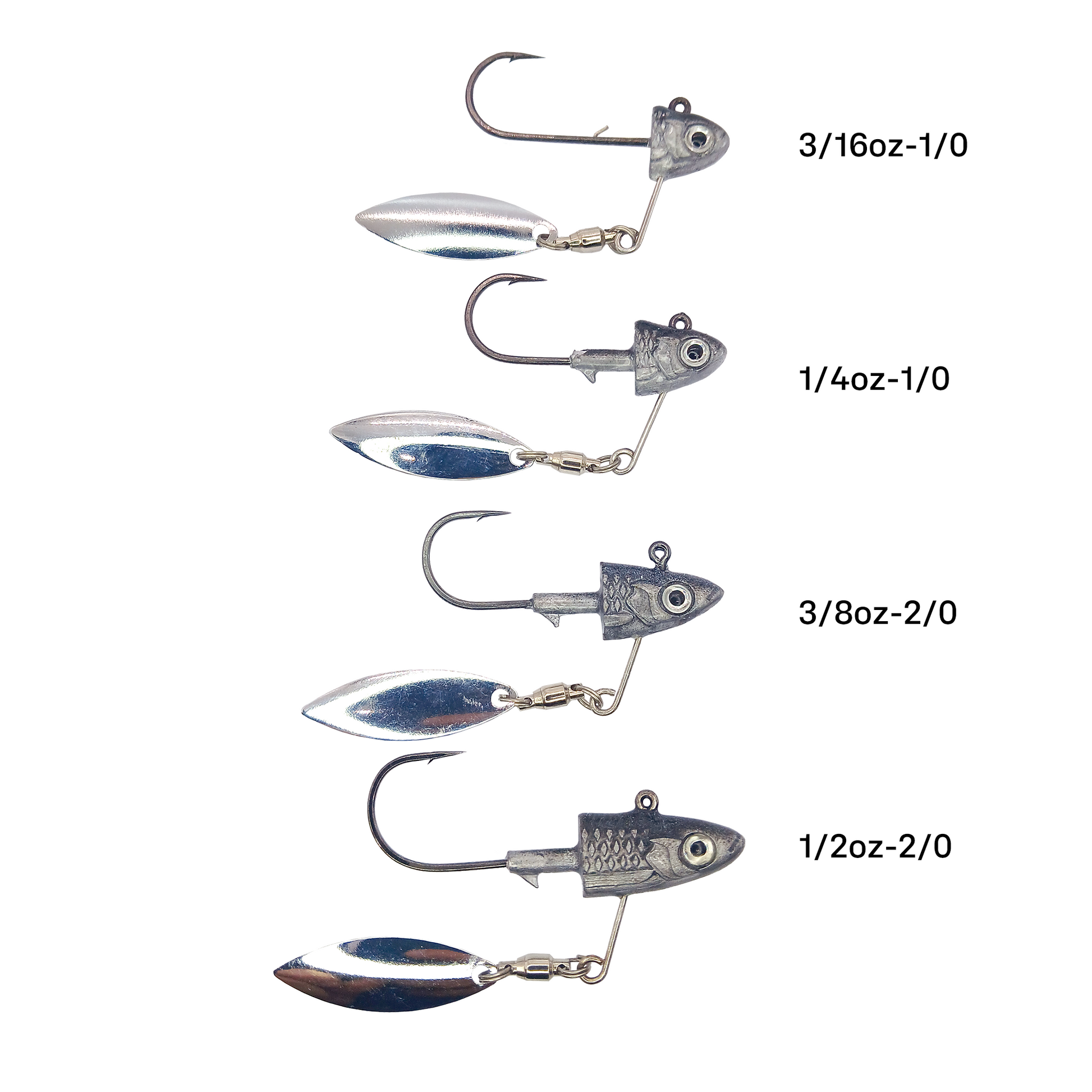 This baitfish-mimicking underspin features a premium black nickel hook made from high grade steel that is the perfect balance of strength and sharpness, a strong under wire designed for maximum hydro dynamics is built into its design and creates the perfect amount of distance and angle so that the high quality bearings and plated blade start spinning as soon as they hit the water.