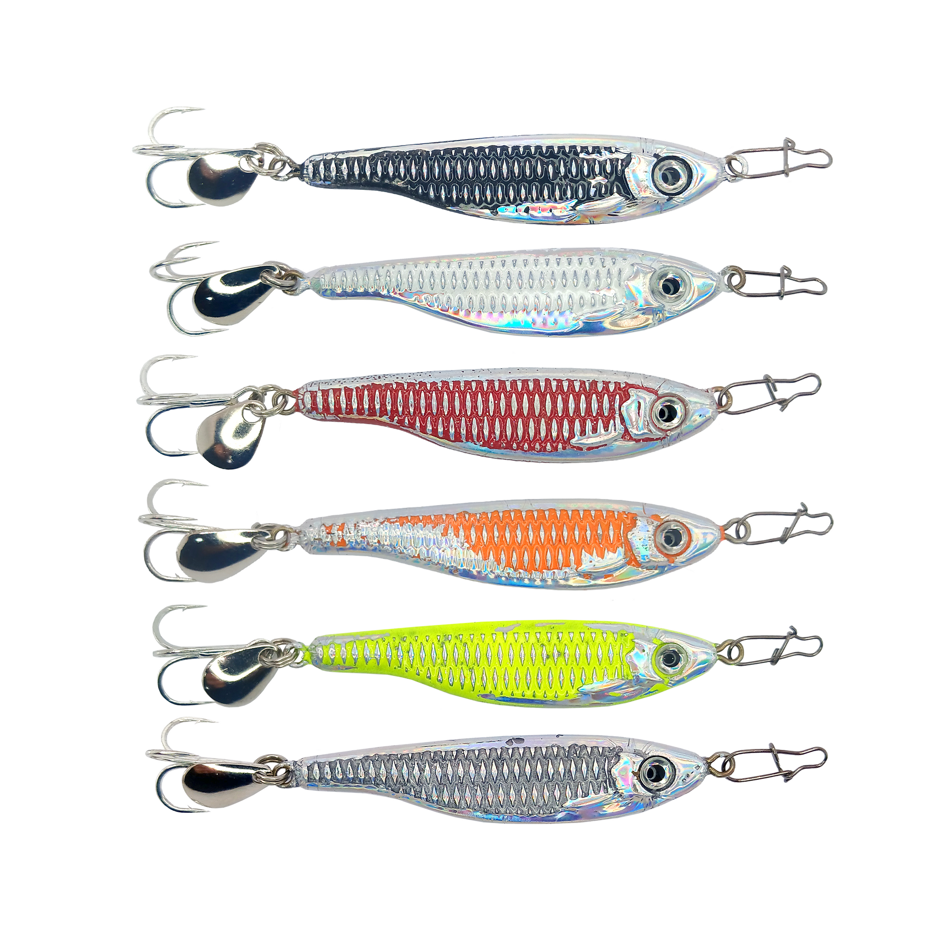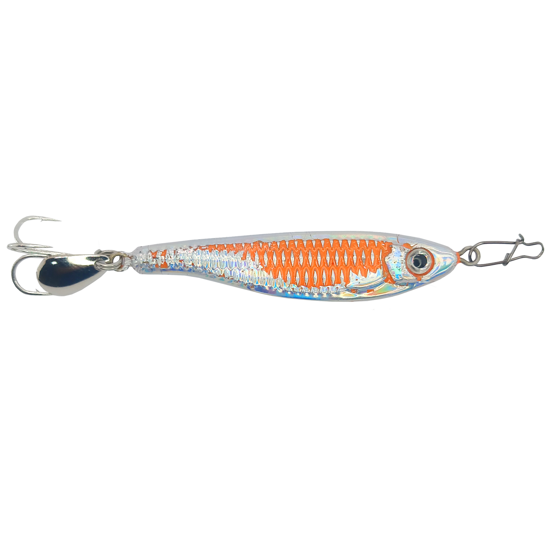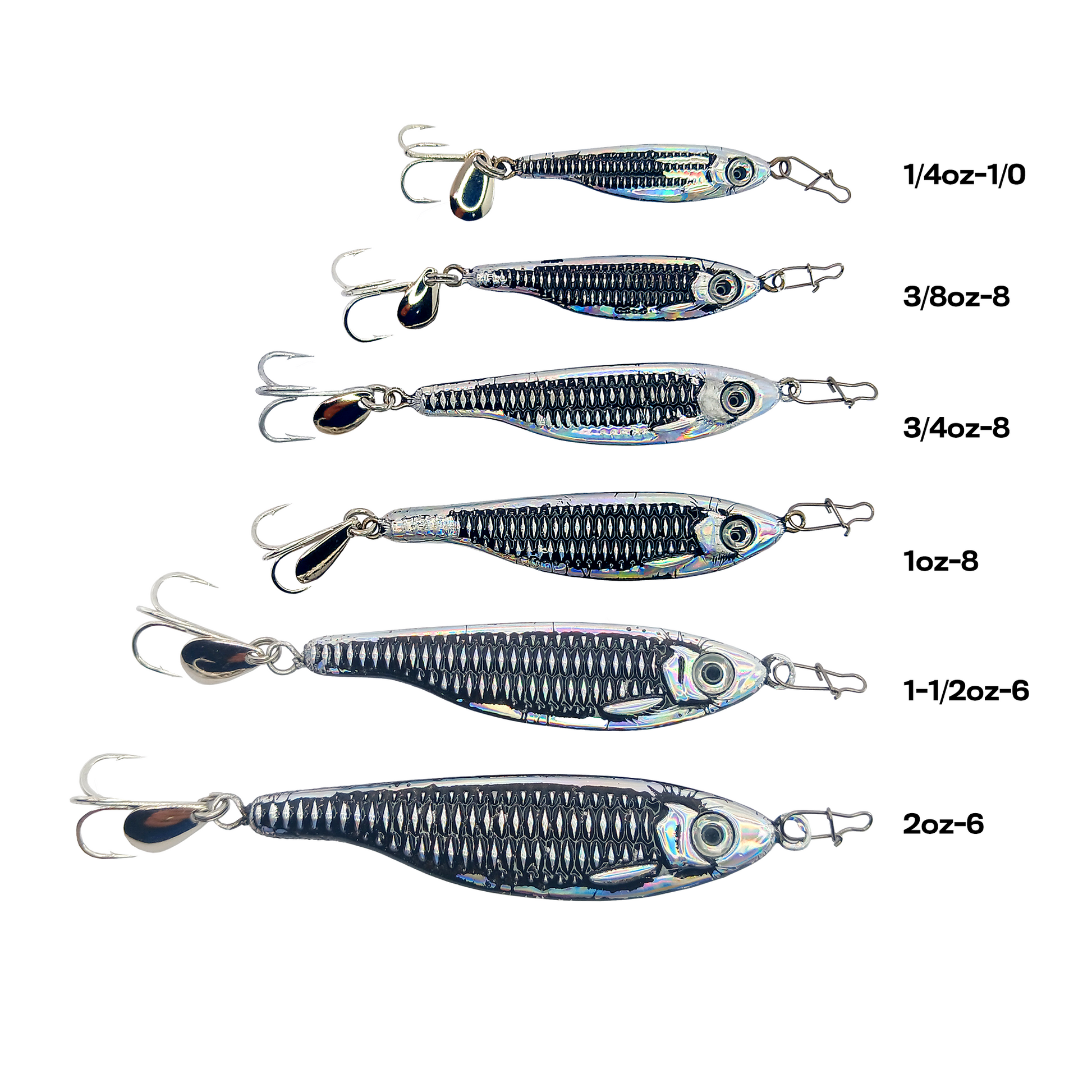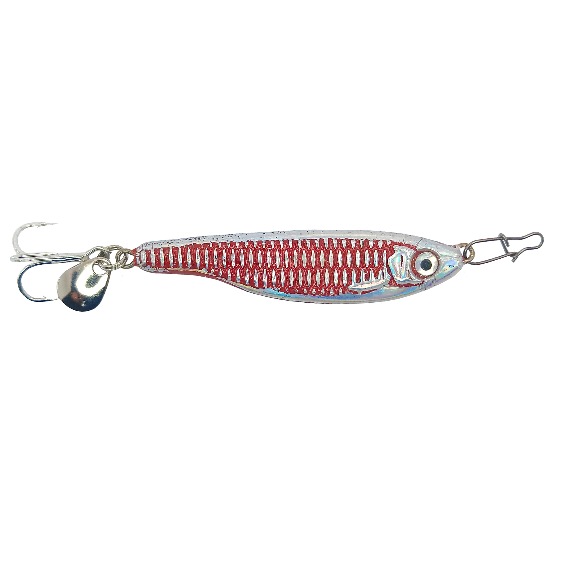 The Silver Platter Jigging Spoon mimics the frantic movement of a dying or fleeing baitfish. You can swim it, jig it, or do a combo of both retrieves depending on where fish are sitting in the water column. The Silver Platter Jigging Spoon has been designed to imitate a distressed or dying bait fish. High-end components including a kicking tail blade, duo lock snap, and a premium treble hook bring the Silver Platter Jigging Spoon to life.